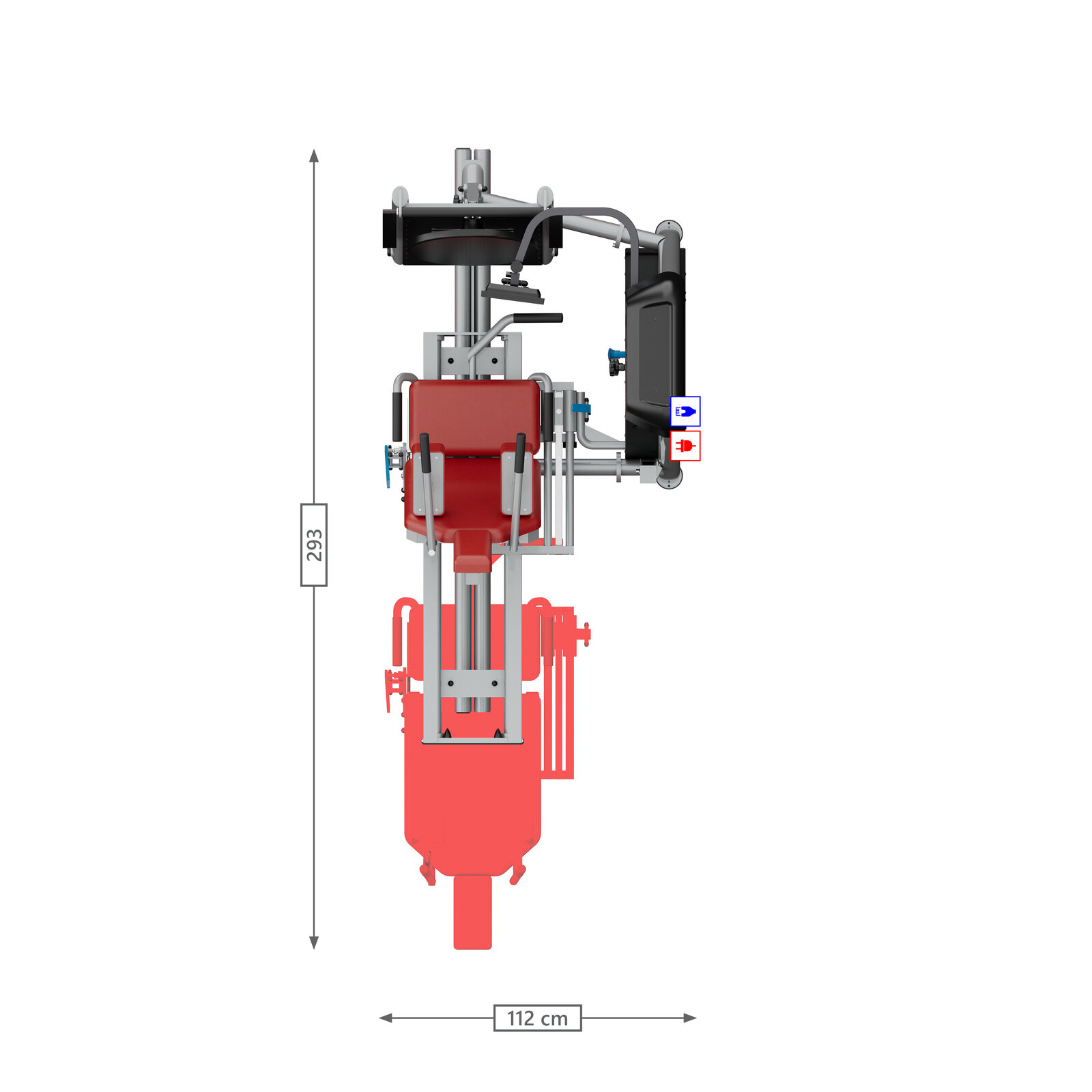 • Stufenlose Einhand-Anpassung der beiden Schulterpolster an Oberkörper