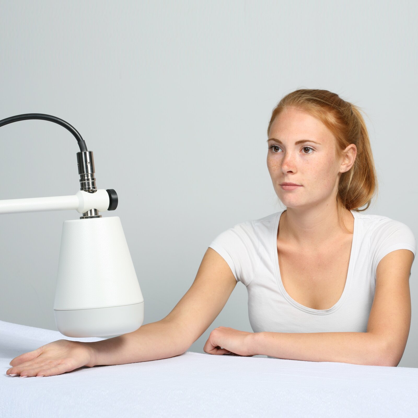 Schnelle und komfortable Strahlerplatzierung durch den einfach verstell- und fixierbaren Gerätearm